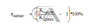Коэффициент запаса представляет собой отношение чистого коэффициента теплопередачи в пластинчатом теплообменнике (рассчитанного без учёта термического сопротивления загрязнений) к расчётному (рассчитанному с учётом термического сопротивления загрязнений) минус единица: